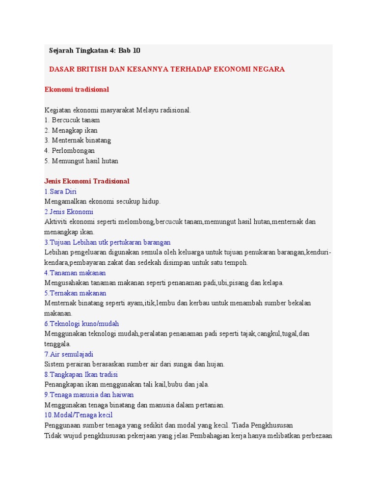 Sejarah Tingkatan 4 Bab 10 Dasar British Dan Kesannya Terhadap Ekonomi Negara from imgv2-1-f.scribdassets.com Keadaan ekonomi semasa penjajahan british telah meninggalkan pelbagai kesan terhadap ekonomi negara kita. Bercucuk tanam menagkap ikan menternak binatang perlombongan memungut hasil hutan. Tingkatan 4 bab 2 : Buku teks sejarah tingkatan empat ms. (ting 4 bab 10) 10.1 pengertian kemerdekaan. Konflik dunia & pendudukan jepun di negara kita. Sejarah tingkatan 4 bab 10 mp3 & mp4. Perkembangan nasionalisme online worksheet for tingkatan 4.