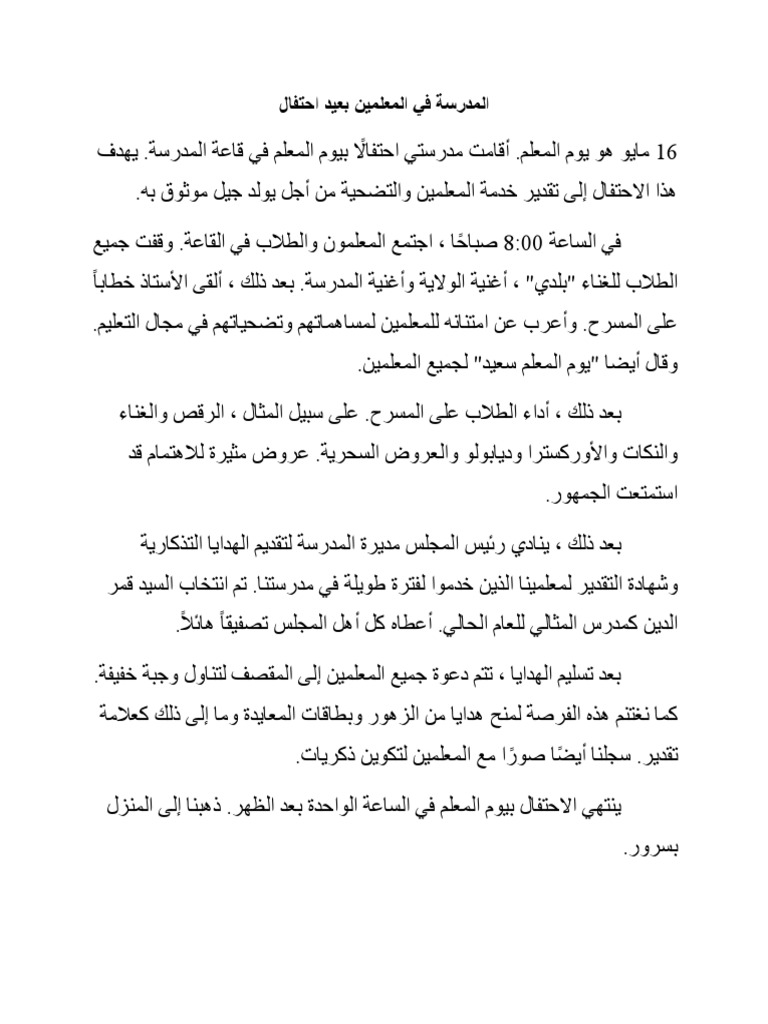 Thank you for teaching from the heart. Tentu sebagai guru (atau mantan guru, karena tidak mengajar mereka lagi) yang pernah mengajari mereka bahasa arab saya merasa sangat bangga dan senang. Artikel makalah tentang ucapan selamat ulang tahun dalam bahasa arab, mabruk alfa mabruk terbaru 2019 dan di lengkapi dengan artinya. Tulisan arab ini dapat di copy paste dalam facebook whatsapp telegram instagram. Bahas arab selamat hari guru adalah يَوْمُ مُعَلِّمٍ سَعِيْدٌ، عِيْدُ مُعَلِّمٍ سَعِيْدٌ.
