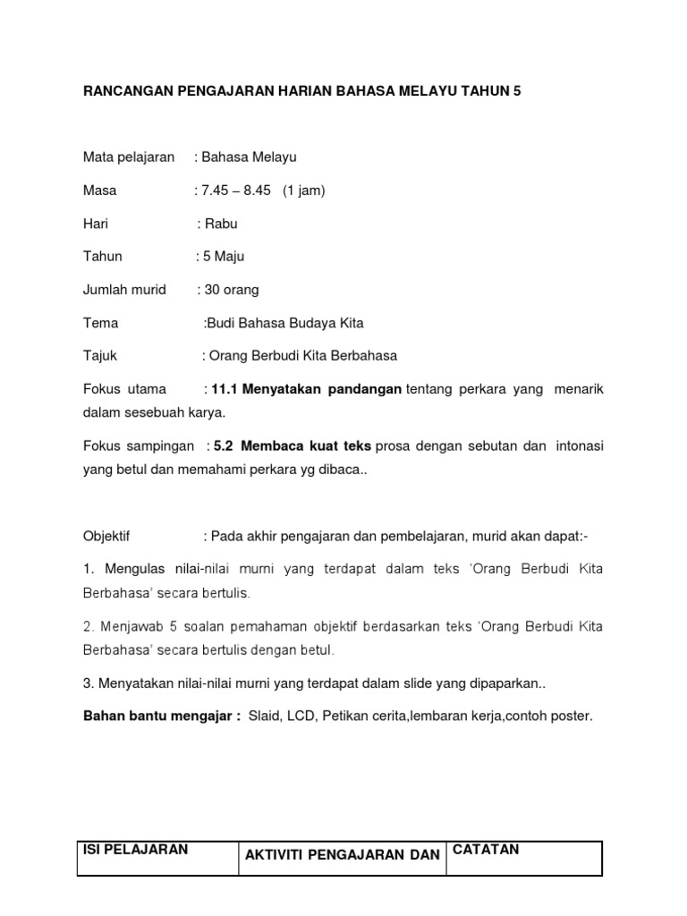 Rph Bm Tahun 5 2019 - Rancangan Pengajaran Harian Rph Pelbagai Subjek 2021 : Bila rph tahun 4 kssr semakan ada ya?